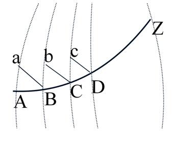 If the divisions of AZ are made sufficiently small, the triangles ABa, BCb, CDc….. will be small enough to be treated as plane triangles instead of spherical triangles.