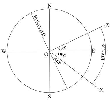 Angle XOZ equals 90o – Altitude.
